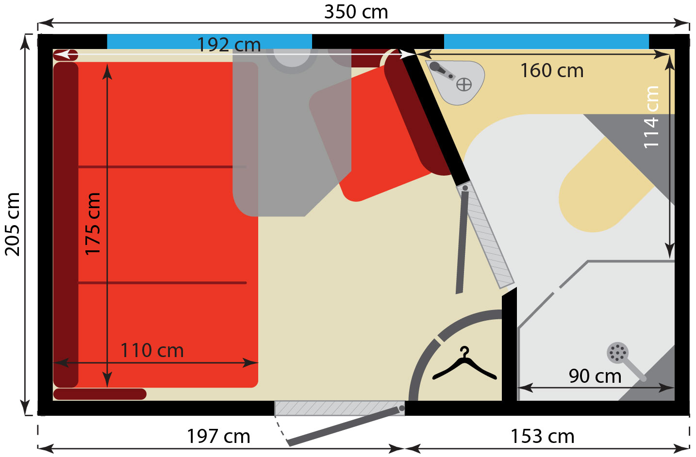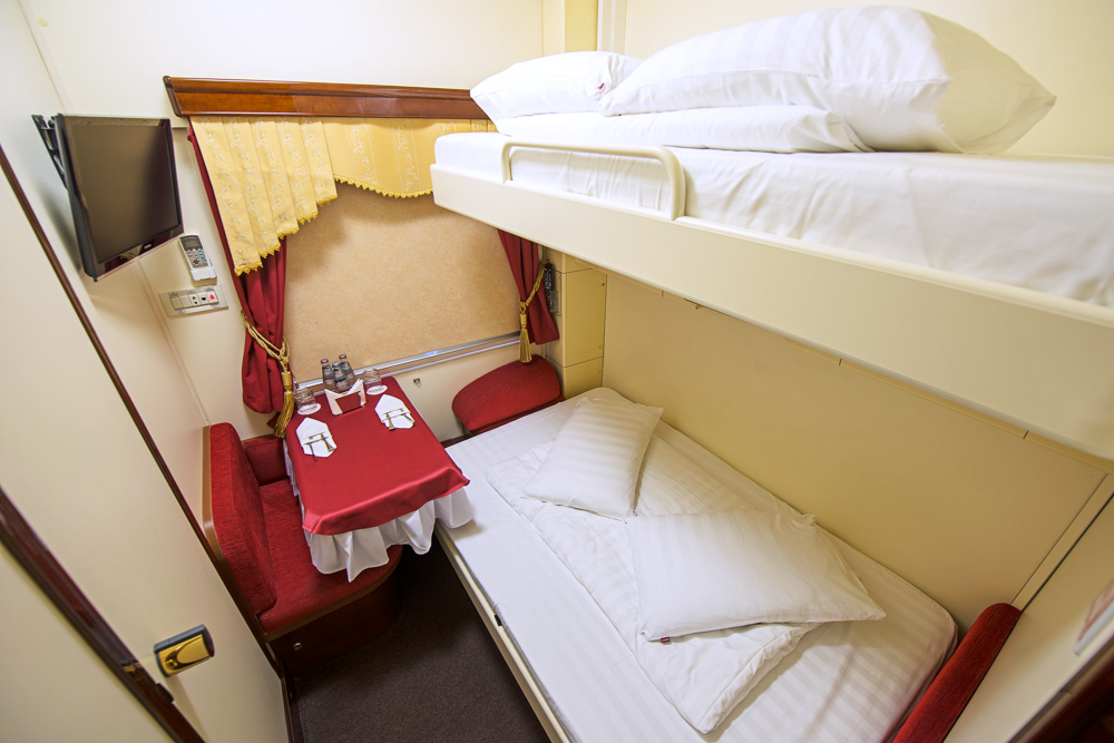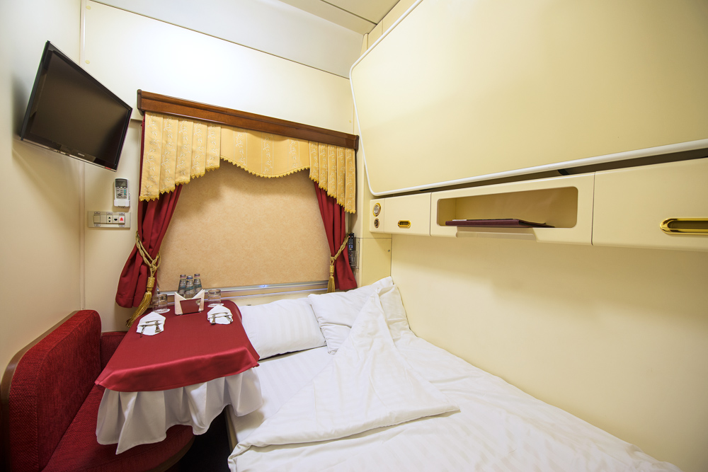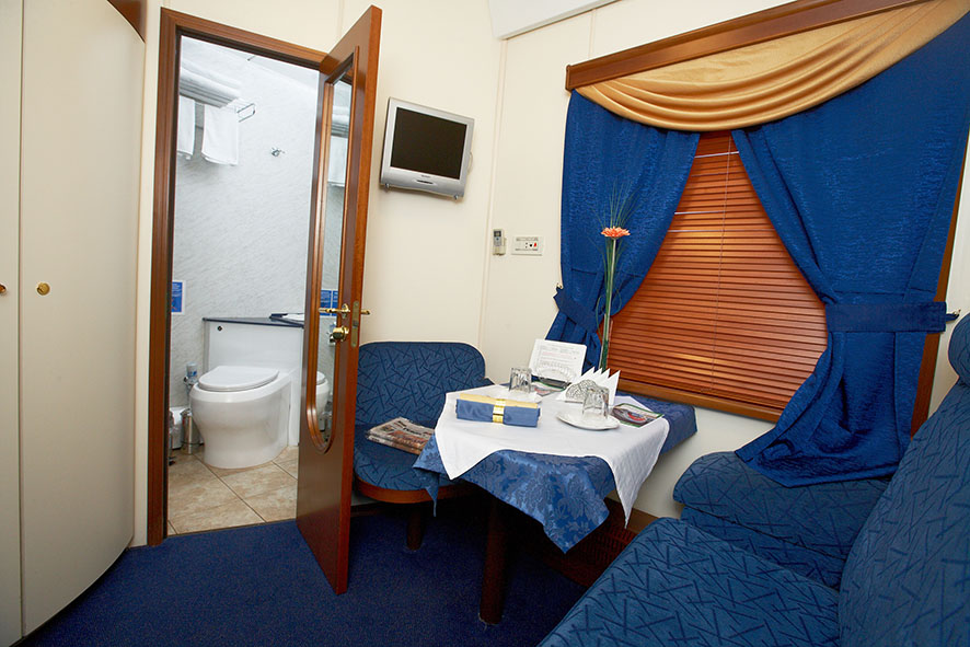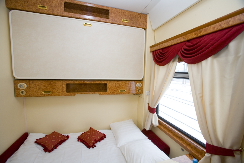 Der Wagen hat 6 Abteile, jedes mit maximal 2-Personenbelegung. 2 Betten übereinander: ein oberes Schrankklappbett und ein in ein Doppelbett verwandelbares Sofa, privates Bad mit Nassdusche, Waschbecken und WC, Tisch mit Sitzgelegenheit, LCD Fernseher, Kleiderschrank mit Gepäckstaufach, individuell einstellbare Klimaanlage.