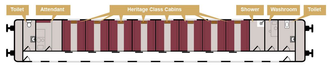 Heritage Class Kabinen sind kompakter, auf 3,35 qm, mit zwei Einzelbetten, einem grossen Panoramafenster und Gepäckaufbewahrung über der Tür ausgestattet. Handtücher, Bademäntel und Hausschuhe stehen Ihnen durch uns zur Verfügung, zusätzlich zu Tee, Kaffee und Mineralwasser, welches von Ihrem Kabinenbegleiter während des ganzen Tages serviert wird.